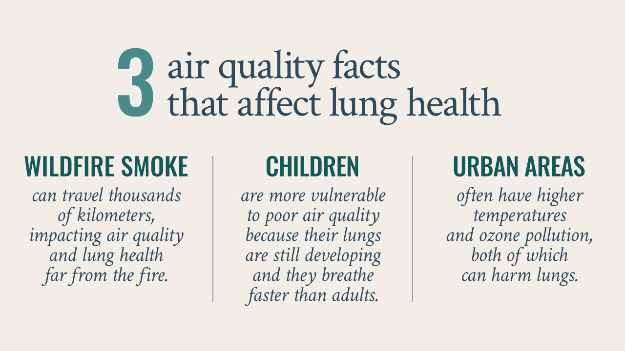 Dr. Beeh explains that poor air quality and heat go hand in hand – and together, they pose a serious threat to people with respiratory conditions. Rising temperatures can increase ground-level ozone pollution, and wildfires release harmful smoke and fine particles into the air2.
