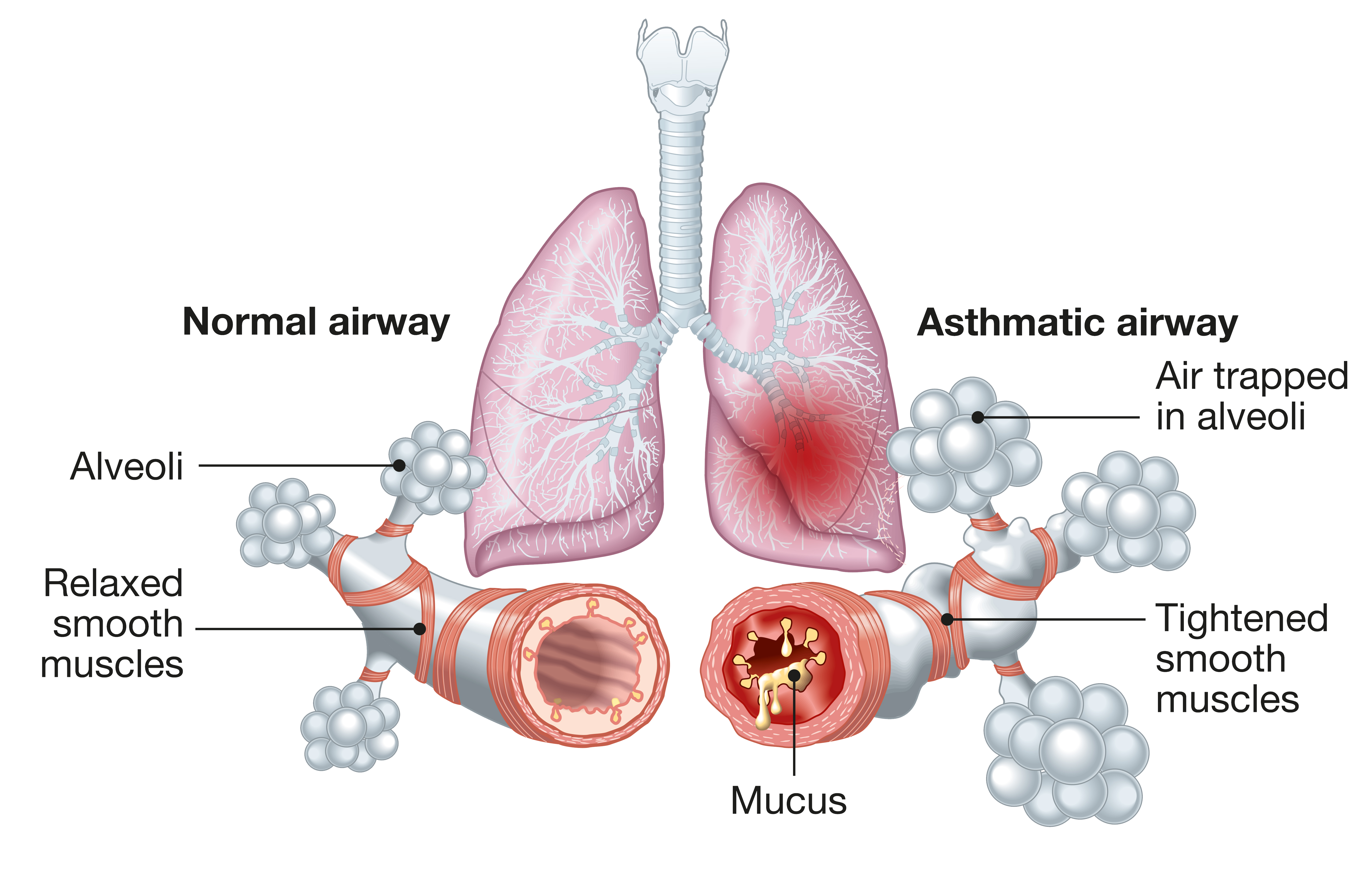 With asthma, the airways in your lungs are sensitive, inflamed and become irritated in certain situations. Irritated airways can produce more mucus and become narrow, which can affect breathing.1 Things that make the symptoms worse are commonly called asthma triggers and sometimes symptoms worsen quickly leading to an asthma attack.
